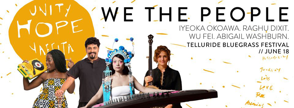 Abigail curated a set called 'We the People', centered around musical diversity and collaboration, at this year's Teullride Bluegrass Festival. Featured artists included Chinese zither player Wu Fei, Indian multi-instrumentalist Raghu Dixit, and Nigerian-American vocalist and poet Iyeoka Okawa, among other bluegrass musicians such as Béla Fleck, Chris Thile and Edgar Meyer.